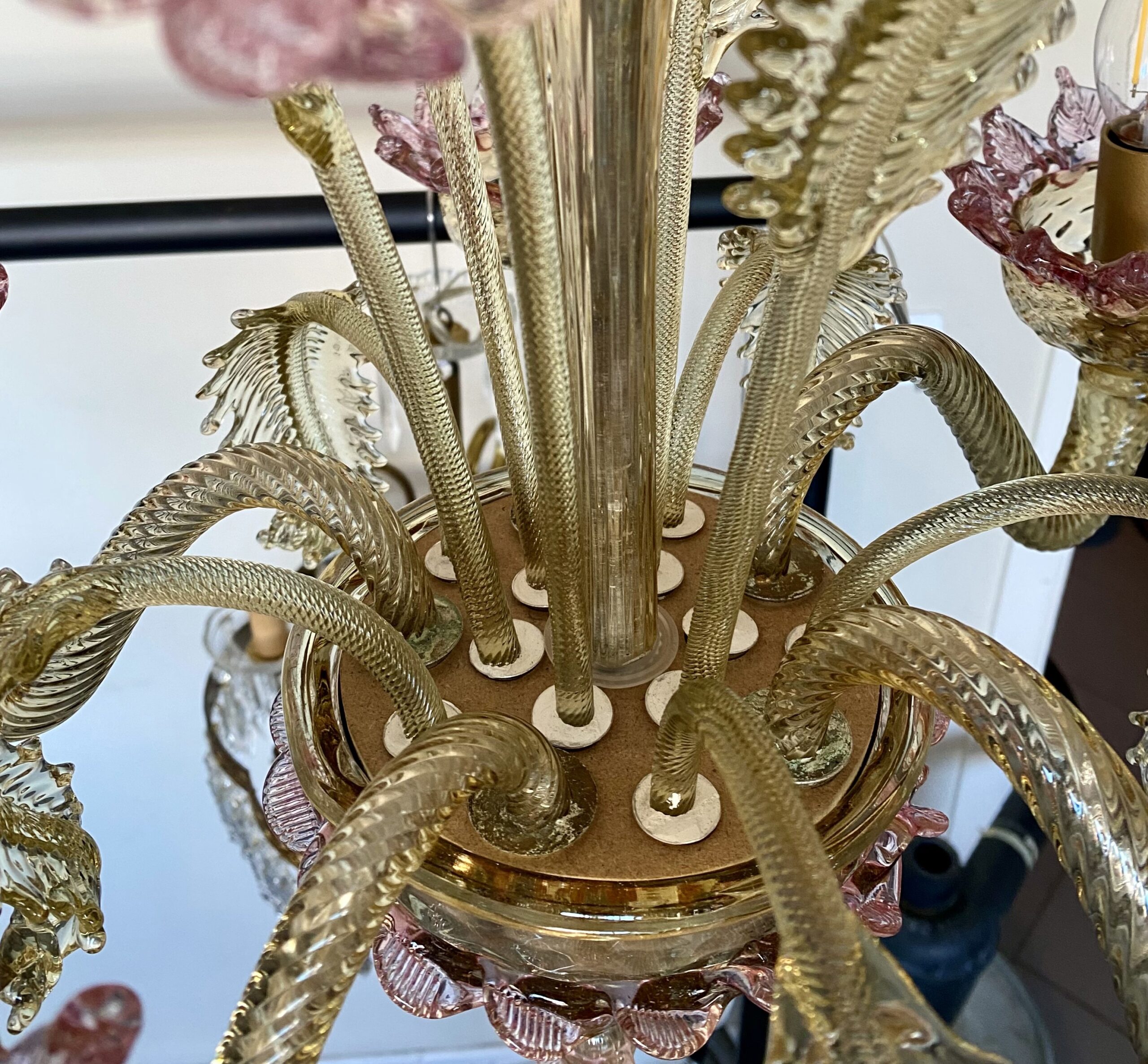 Questa lampadario è un raffinato esempio di artigianato in vetro di Murano, celebre per la sua lavorazione artistica e tradizionale. Questo modello si distingue per i suoi colori fumé e rosa, che conferiscono un’eleganza delicata e sofisticata.