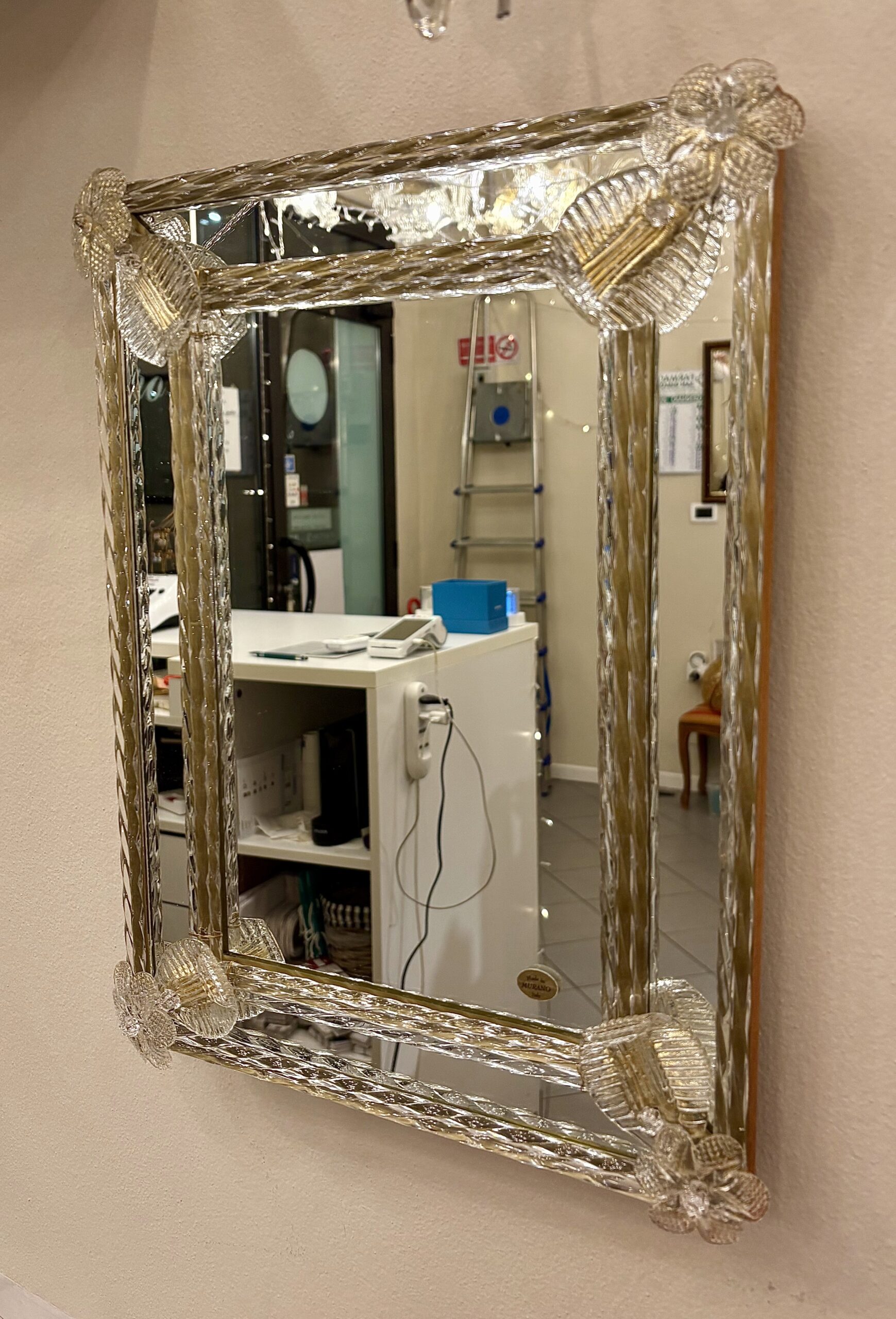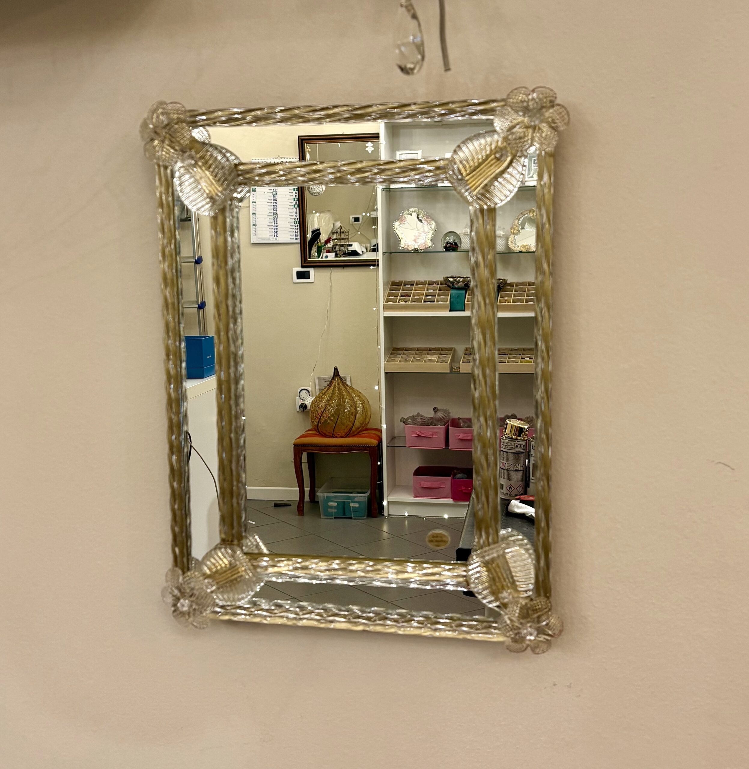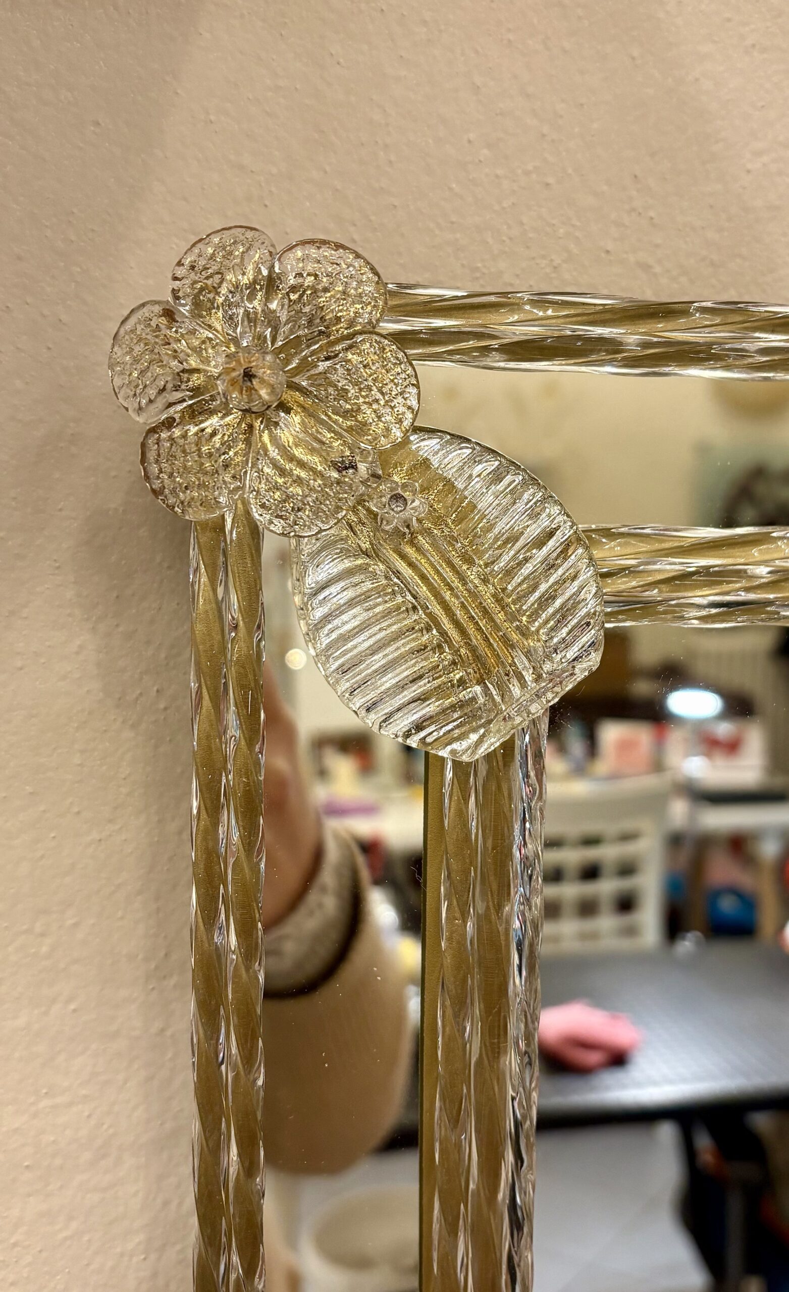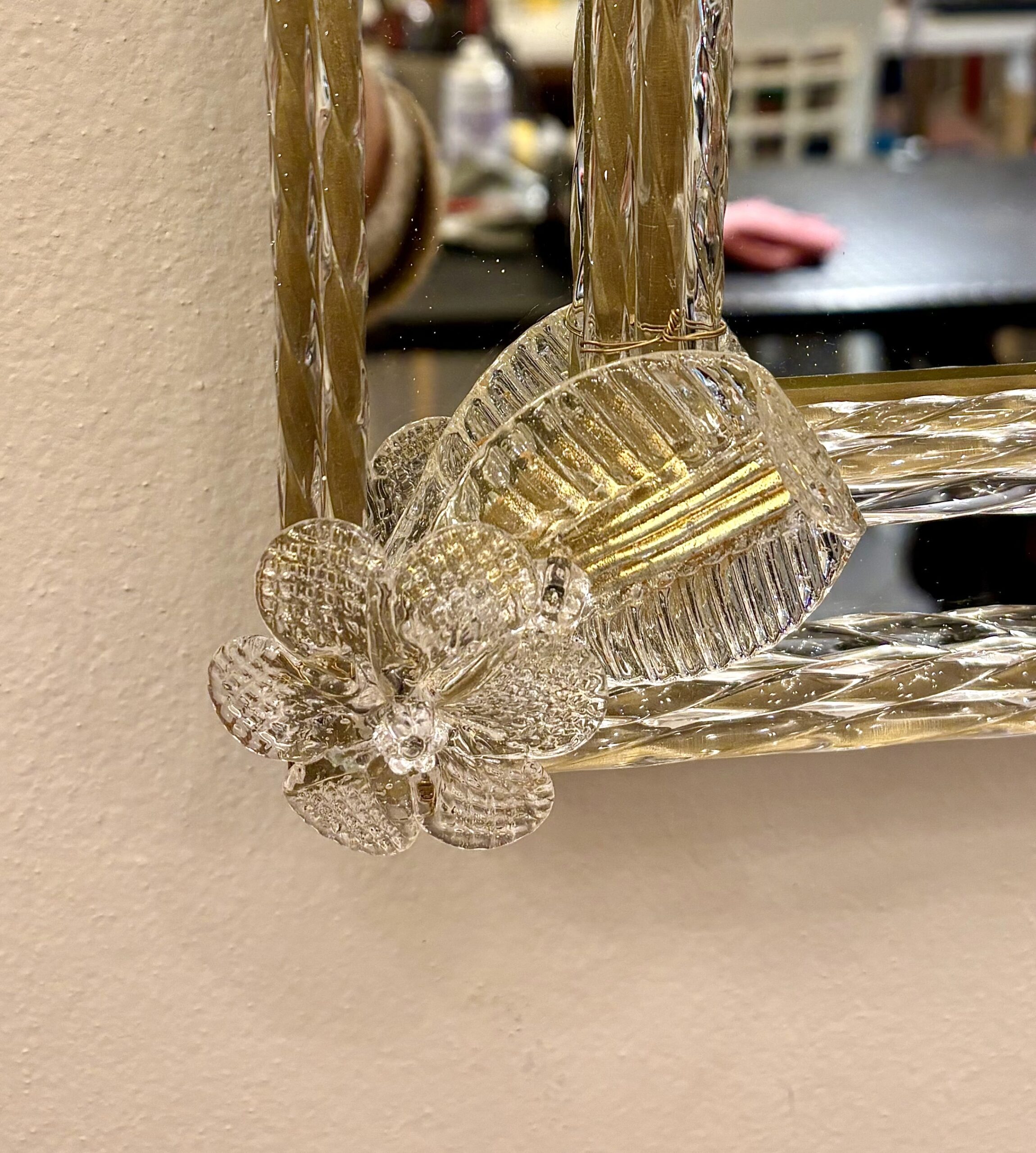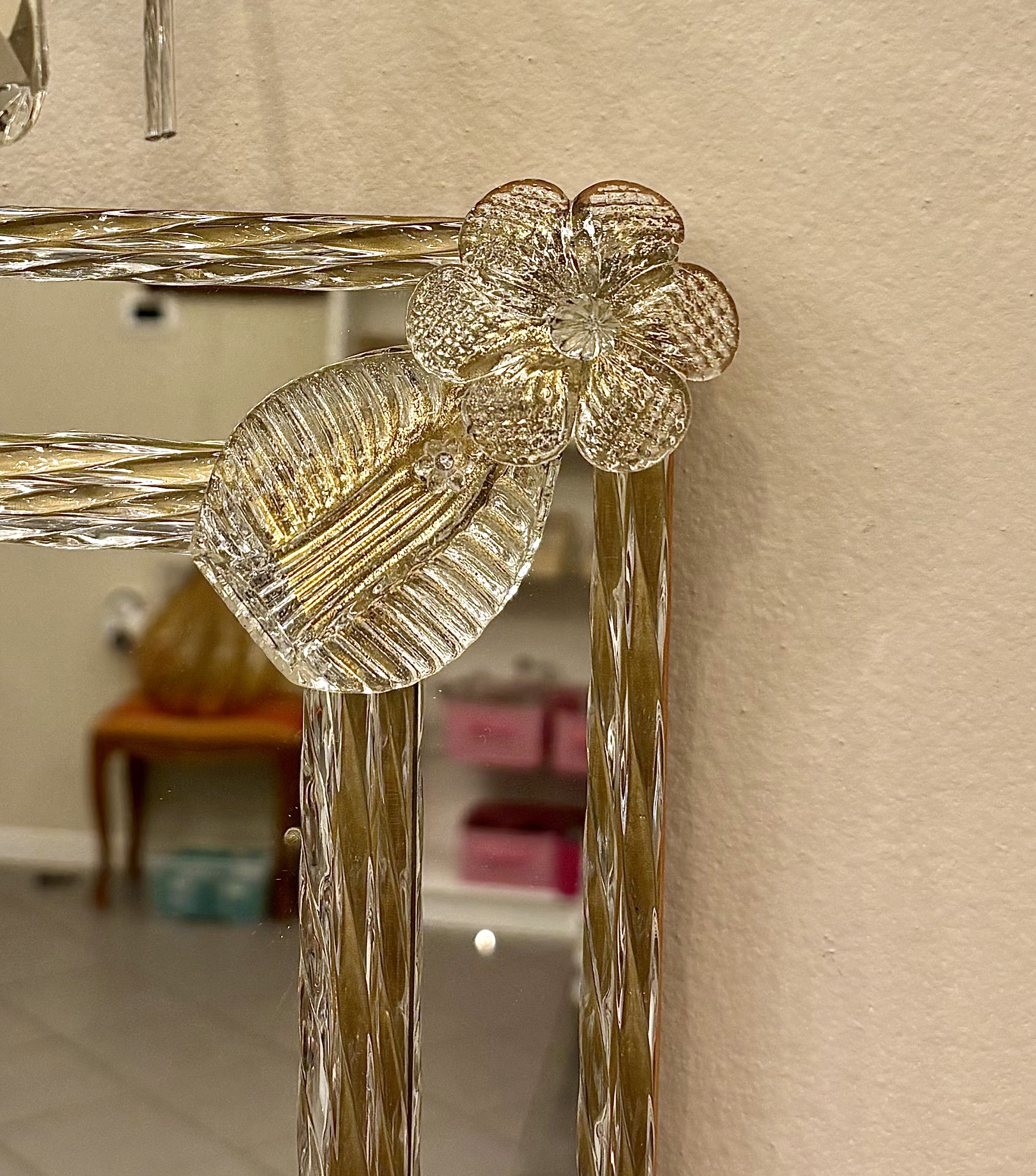 Le canne di vetro a torciglione, che fanno da cornice allo specchio, sono indubbiamente sinonimo di alta artigianalità veneziana.